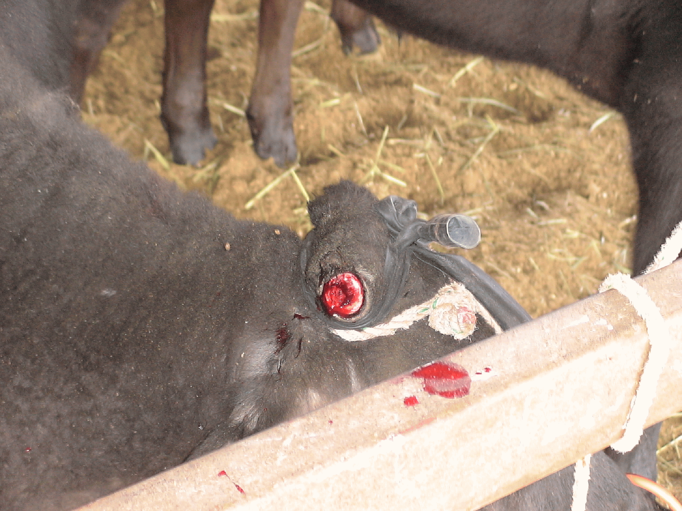 (除角の方法は、各牧場によって様々で、全てが上記方法とは限りません)
